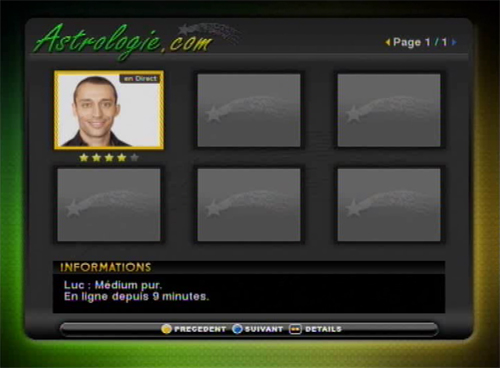 C'est dingue tous ces commentaires de personnages aigris, quand y'a une nouvelle chaîne chinoise, qui ça intéresse à part les chinois ? Quand on met une chaîne culinaire, qui ça intéresse à part les gourmet(tes) ? Personne ne m'a forcé à regarder des chaînes qui ne m'intéressent pas mais je conçois parfaitement que certaines personnes apprécient plus que d'autres.Maintenant la voyance c'est comme l'astrologie, on y croit ou on y croit pas, cela ne regarde que la personne concernée, cela ne regarde qu'elle. Personnellement je suis allé voir des voyants dans ma vie que j'ai payé une cinquantaine d'euros pour une consultation, si maintenant on me donne la possibilité de voir de bons voyants (avez vous regardé la liste des voyants en ligne? il y a des voyants qui passent sur de grands chaines et sur de grandes radios) pourquoi pas.Encore une fois ceux qui n'adhérent pas peuvent passer leur chemin, comme moi avec les chaînes à thème ou étrangères, pour ceux qui aiment, ils sont au moins servis...