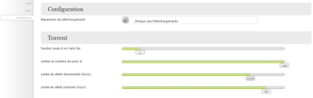 L’écran de configuration permet de régler l’usage que peut avoir la SeedBox de la bande passante de votre connexion ADSL. Si vous ne savez pas à quoi tous ces réglages correspondent, ne touchez à rien.