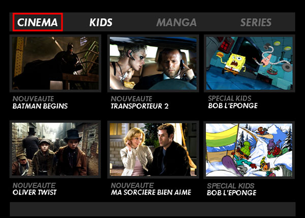 Le canal 100 devient ainsi une véritable page d’accueil pour la vidéo à la demande avec des liens vers les différents genres :