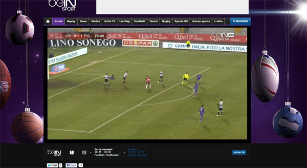 beIN Sport vient de lancer un nouveau service qui permet de suivre les chaînes beIN Sport 1 et beIN Sport 2 depuis son site Internet et donc partout dans le monde. Ce service est ouvert pour le moment uniquement pour les Freenautes abonnés à la chaîne. Afin de pouvoir visualiser le live des chaînes, il vous sera demandé de vous connecter avec vos identifiants Freebox. Les chaînes sont ensuite visibles dans un lecteur, que l’on peut mettre en plein écran. Il ne s’agit pas là du multiposte, pour lequel il faut impérativement être connecté à sa Freebox, l’accès à ce service est au contraire disponible depuis n’importe quelle connexion, sur ordinateur ou tablette.