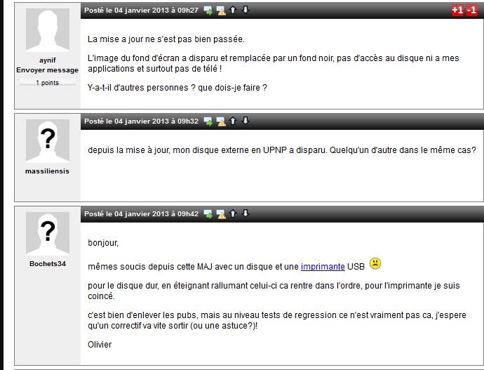 Des bugs sur le serveur Freebox depuis la mise à jour du Firmware1.1.9