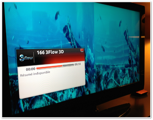Pour bénéficier de l’effet 3D, il faut bien entendu disposer d’un téléviseur compatible 3D et de lunettes prévues à cet effet. « 3Flow 3D » est proposée gratuitement dans le bouquet basic de Freebox TV sur le canal 166.