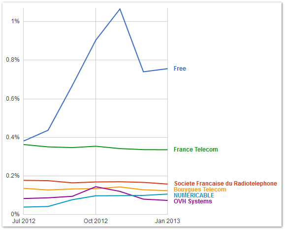 J'utilise pas youtube/applestore et autres, mais depuis quelques temps, ça se compte en semaines, j'ai de grosses dégradations......Le soir seulement, j'entends par la vers 18h-20h, ou il est impossible quasiment de surfer tranquille.....de la lenteur ça fini par me souler (j'ai entre 6.5 et 7 mo de débits). Par contre le reste du temps aucun probleme... Le truc c'est que je me vois pas changer de FAI :p, d'ailleurs pour aller ou ?
