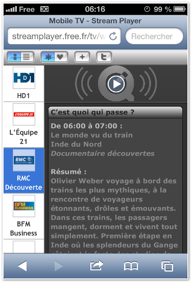 La visu des chaines TV Freebox fonctionne parfaitement depuis Smartphone, via le navigateur (Safari ou autre) et le site web streamplayer