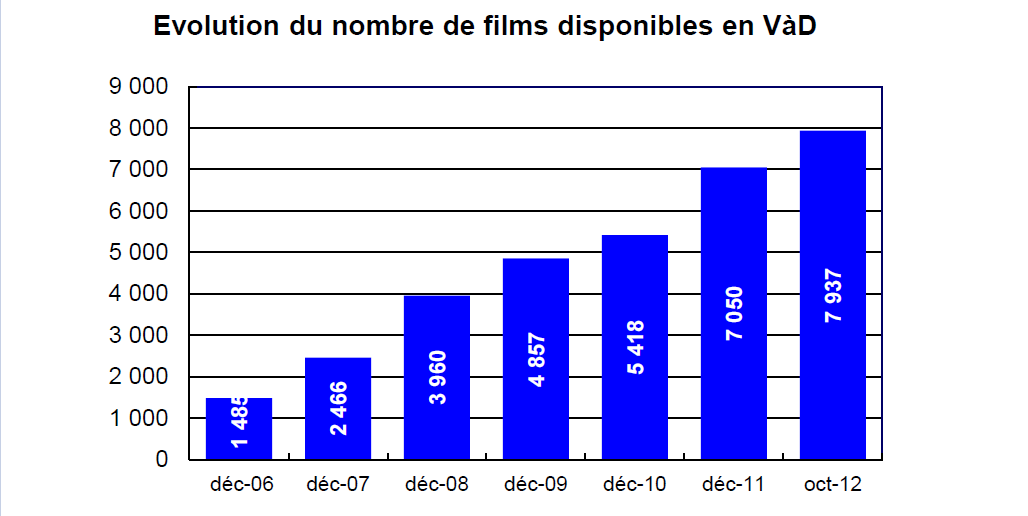 Technologie Développée dans les année 2000, la VOD s’est depuis sans cesse développée pour atteindre 10 213 films à la fin octobre 2012.