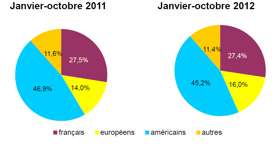 Au niveau de l’offre, le cinéma américain représente toujours près d’un films sur deux, quand le taux de films français se stabilise à 27 % de l’offre.