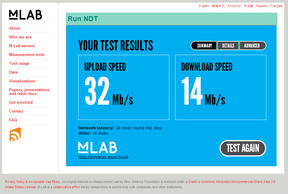 J'ai personnellement testé plusieurs connexion avec l'outils de M-Labs, et il me donne des résultats tout à fait conformes aux connexions testés.