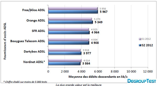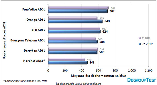 Baromètre des connexions Degrouptest : Free offre les meilleurs débits en ADSL
