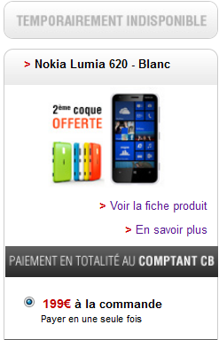 Depuis aujourd’hui, le Nokia Lumia 620 proposé à 199 € en exclusivité sur la plateforme Free Mobile, avec une coque de couleur au choix, est déjà indisponible sur la plateforme. Victime de son succès, espérons que Free ne subisse pas la même pénurie qui avait touché l’iPhone5 en 2012 lors de son lancement.