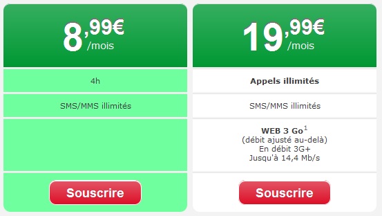 même prix çà dépend, chez Virgin c'est tout le temps 8.99€ même si tu téléphone que 2h.