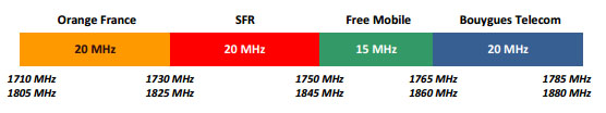 - Orange France : 1710 – 1730 MHz/ 1805 –1825 MHz ;