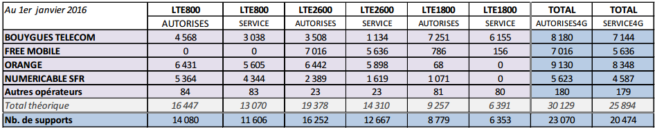 A noter également le déploiement des fréquences 1800MHz qui accélère chez Free, avec 121 antennes supplémentaires pour un total de 156 antennes.