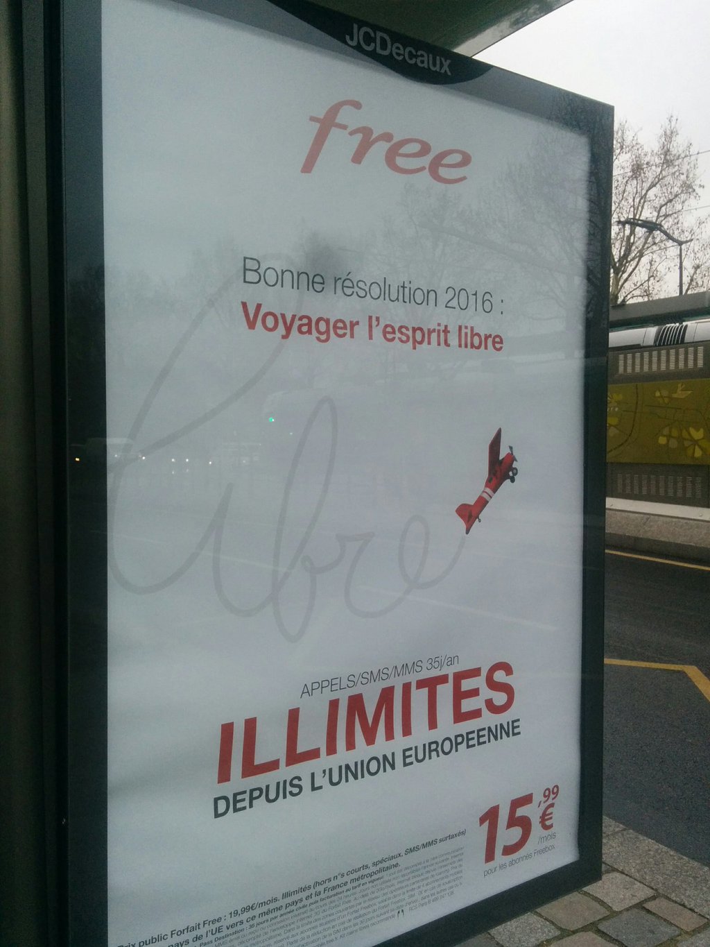 Free lance une nouvelle campagne de pub pour 2016 : "voyagez l’esprit libre" et "être généreux"