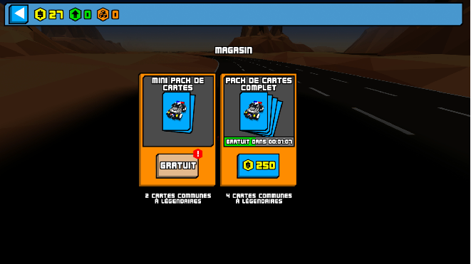 Avec les pièces récupérées durant vos parties vous pourrais acheter des packs de cartes qui vous fourniront des pièces ou divers bonus. Régulièrement, vous pourrez aussi avoir ces packs gratuitement.
