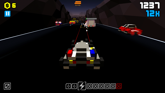 Votre véhicule avancera et tirera automatiquement, il faudra juste le déplacer de gauche à droite. Vous devrez détruire les autres véhicules et chaque véhicule détruit laissera tomber une pièce. En se détruisant, les véhicules laisseront tomber des débris qu’il faudra esquiver pour ne pas subir de dégâts. Différents types de véhicules existent, dont certains tenteront de vous attaquer.