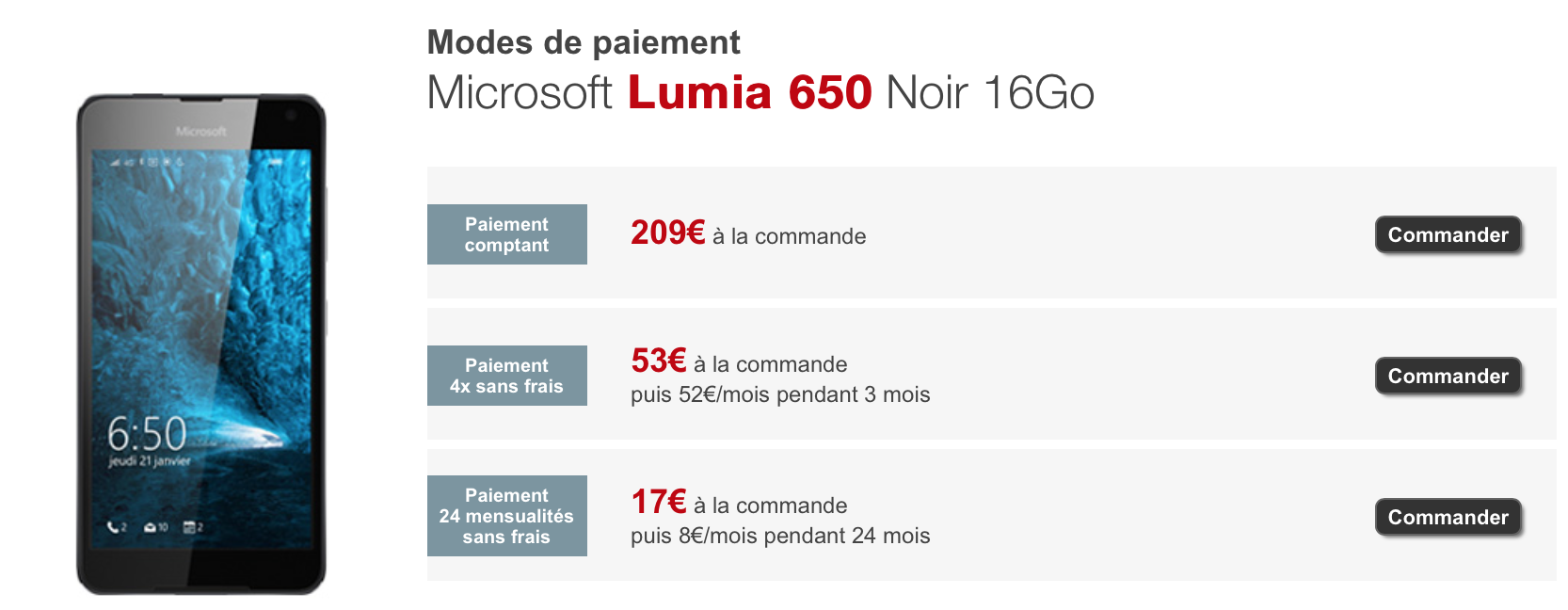 Il est désormais proposé au tarif de 209€ au lieu de 219€. Il est possible de le commander en 4 fois sans frais (53€ à la commande puis 52€ pendant 3 mois) ou en 24 fois sans frais (17€ à la commande puis 8€ pendant 24 mois).