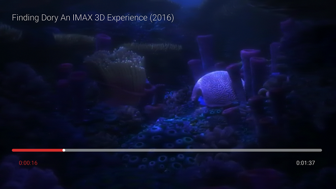 La deuxième modification est la barre de contrôle durant la lecture de vos films, qui était présente sur la plupart des applications Android TV, et qui se retrouve grandement allégée avec uniquement la barre de défilement. Les fonctionnalités d’avance, recul, pause/lecture sont toujours disponibles mais les boutons, eux, disparaissent de l’écran.