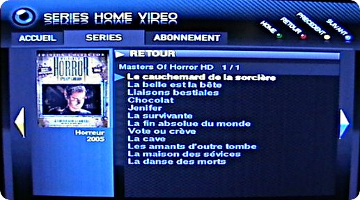 Une des bonnes surprises vient de la catégorie « série » qui intègre 12 films de la série Masters of horror, et en HD s’il vous plait. Cette série de films a été confiée à différents réalisateurs reconnus.