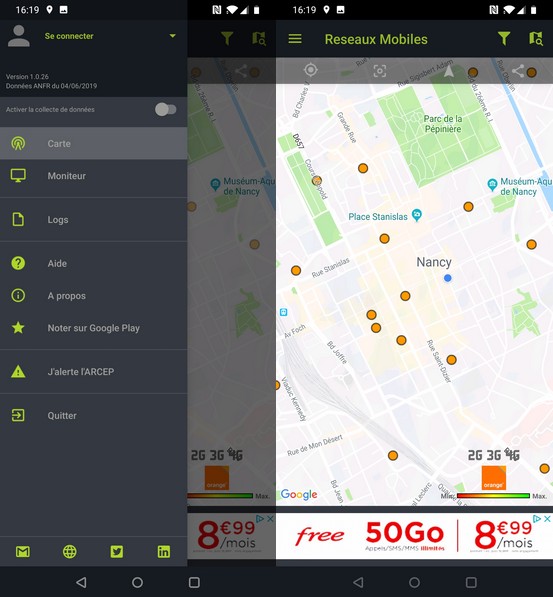 Disponible gratuitement sur le Play Store et destinée aux utilisateurs sous Android (à partir de la version 4.4), "Réseaux Mobiles France" permet aux abonnés des quatre grands opérateurs (Bouygues Telecom, Free Mobile, Orange et SFR) de connaitre la position et les caractéristiques des antennes-relais sur le territoire. L’application donne également la possibilité de cartographier sa propre couverture mobile "à partir des relevés de niveau du signal capté par votre téléphone", puis de partager ces données pour établir une carte de couverture des réseaux mobiles en France (Crowdsourcing).