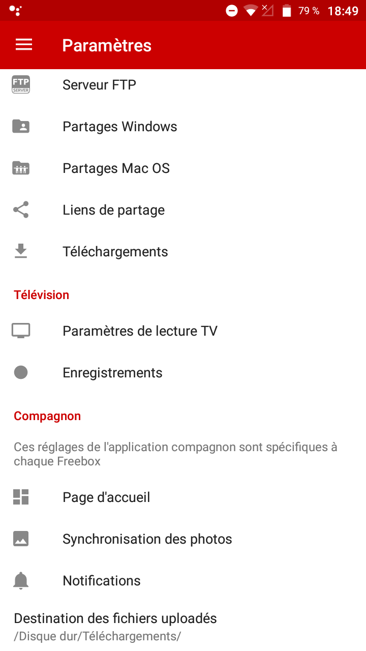 Une fois l’application Freebox téléchargée (disponible sur Android et iPhone) et votre Freebox reconnue par celle-ci (petit rappel d’authentification), cliquez alors sur "Synchronisation Photo" du menu principal dans le menu "Paramètre"