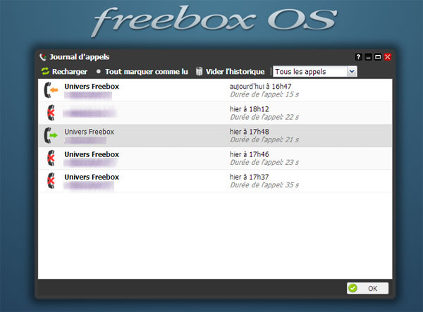 Freebox OS, disponible sur Freebox Révolution, Delta, One et Freebox Mini 4K, propose une fonction "journal des appels", couplée à une gestion des contacts. Nous vous proposons de découvrir ces deux services.