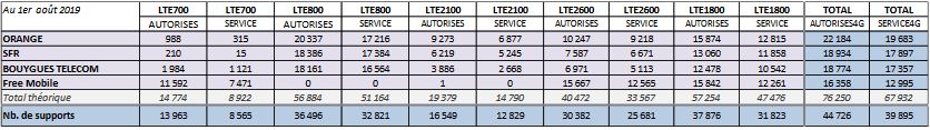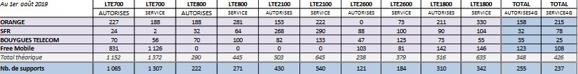 - Bouygues Télécom (17 357 sites, + 25 en juillet 2019) ;