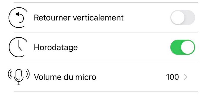 - Horodatage : Affiche la date et l’heure sur la vidéo : pratique pour les enregistrements !