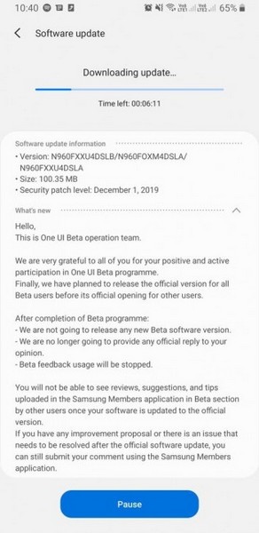 Au regard du peu de choses contenues dans la dernière bêta de la mise à jour One UI 2 basée sur Android 10 et destinée au Galaxy Note9, la version finale s’annonçait assez proche. Elle l’est encore plus aujourd’hui. En effet, ceux ayant participé à la phase bêta commencent à recevoir la version finale.