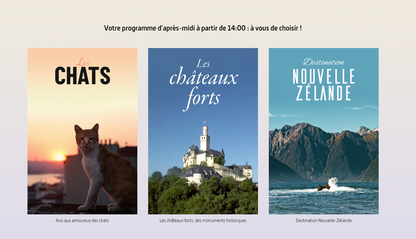 L’après-midi, à partir de 14 h, vous aurez le choix entre 3 documentaires :
