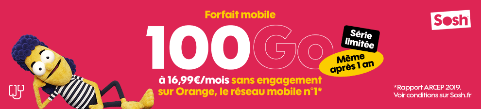 Disponible jusqu’au 6 août à 9 heures, le forfait 100 Go série limitée de Sosh est de nouveau proposé sur son site.
