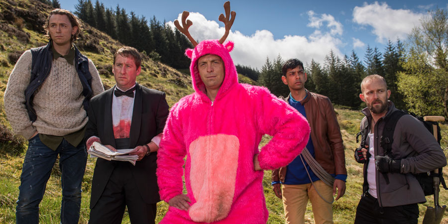 -STAG - Un enterrement de vie de garçon en Écosse tourne au jeu de massacre. Mi-hilarant, mi-horrifique. Minisérie de Jim Field Smith (Royaume-Uni, 2016, 3x52mn) ; Avec : Stephen Campbell Moore, Jim Howick, Pilou Asbæk.
