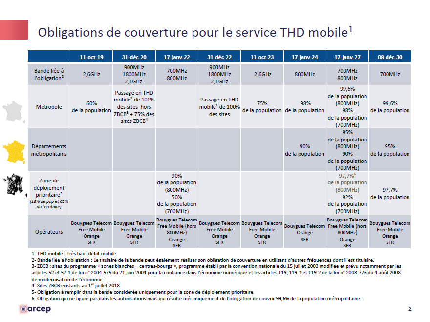 Résorber les zones blanches et généraliser la 4G sur tout le territoire, c’est la mission donnée aux opérateurs dans le cadre d’un accord signé avec l’Etat en janvier 2018, le New Deal. L’Arcep ne le cache pas, " depuis 2013, la progression de la couverture nationale a été plus que laborieuse", il fallait donc prendre le taureau par les cornes afin d’offrir à tous une connexion très haut débit digne de ce nom.