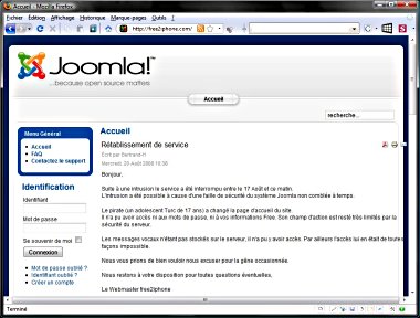 Le responsable du site et de l’application Free2iPhone nous a rapporté que "l’intrusion a été possible à cause d’une faille de sécurité du système Joomla". Le pirate n’a pas eu accès aux mots de passe, et aux informations Free. Les messages vocaux n’étant pas stockés sur le serveur, le pirate n’a pu y avoir accès (heureusement).