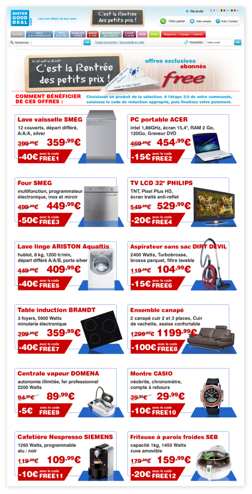 Une offre exclusive de Mistergooddeal.com permet à tous les Freenautes de profiter de réductions pouvant aller de 10 à 100 euros, en passant commande sur Mistergooddeal, célèbre site de commerce en ligne. L’offre est disponible du 25 au 31 aout.