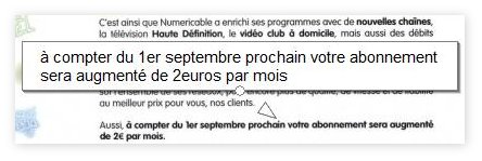 * 2 euros d’augmentation par mois pour financer le très haut débit, les chaines HD, comme l’a annoncé le cablo-opérateur. L’augmentation de tous les abonnés Numéricable commence d’aujourd’hui (cf : Numéricable : Montez en augmentation).