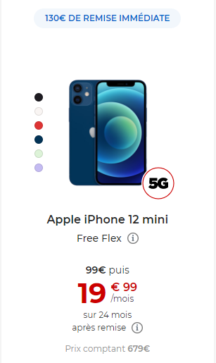 Le premier modèle concerné est l’iPhone 12 mini qui bénéficie d’une remise de 130€.