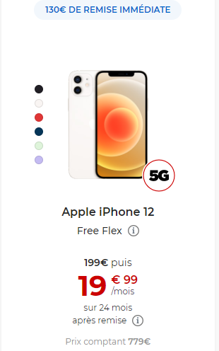 Free propose une promo temporaire sue tous les modèles d’iPhone 12 et 12 mini, que ce soit en achat comptant ou avec Free Flex, la nouvelle formule lancée par Free, qui permet de bénéficier d’une large gamme de smartphones, en payant une petite chaque mois durant 48 mois, et en ayant la possibilité de le conserver à l’issue de cette période. Nous vous annoncions hier qu’une nouvelle ODR réservée à la formule Free Flex était également proposée.