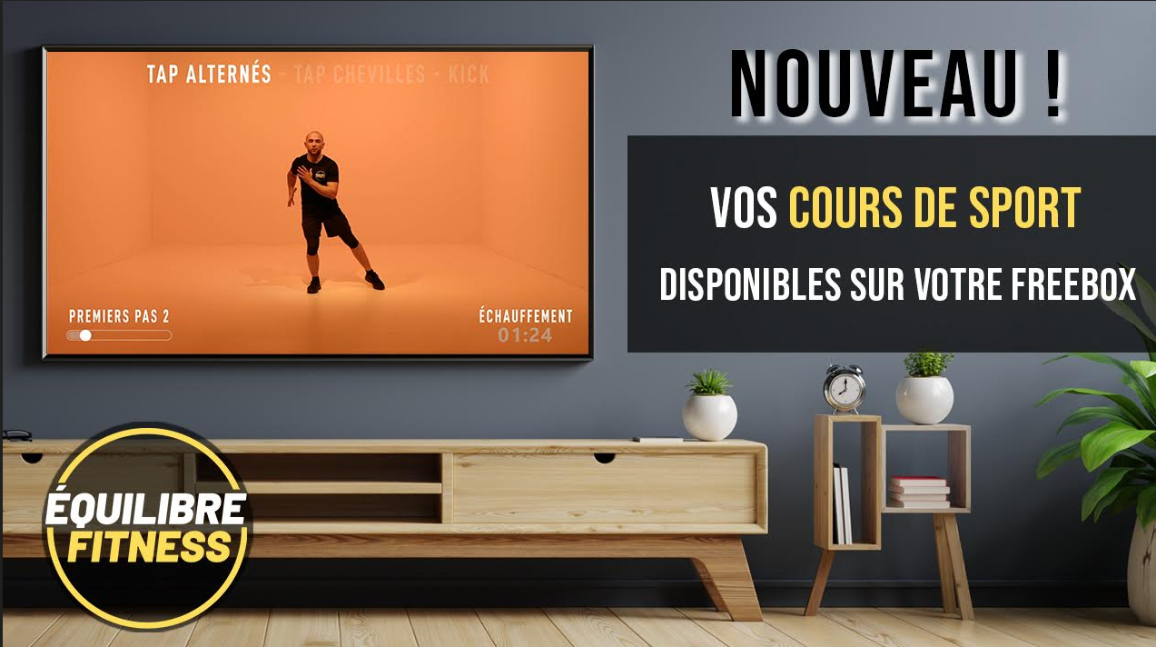 Le nombre de services de vidéo à la demande par abonnement ne cesse d’augmenter et de se diversifier sur la Freebox. Aujourd’hui c’est le lancement de Équilibre-Fitness. Le concept est simple, des cours de fitness format vidéo de 6 à 25 minute encadrés uniquement par des professionnels du fitness comprenant une quinzaine de disciplines (Cardio, Yoga, Pilates, Renforcement musculaire, Étirements, Focus abdos, Focus fessiers ...). Pour son lancement sur la Freebox, une première vague de plus de 60 cours différents est disponible pour tous les niveaux
