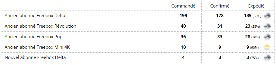 Etat des livraisons au 23 août selon Freebox.toosurtoo