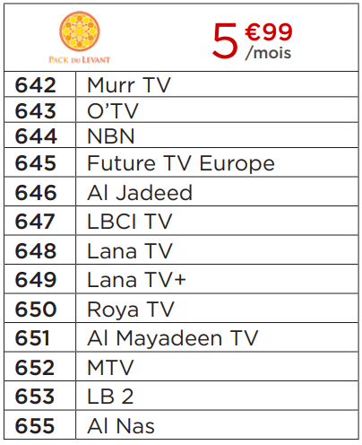 Le pack du Levant va accueillir trois nouvelle chaîne pour un prix identique.