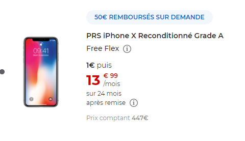 Plusieurs modèles d’iPhone reconditionnés bénéficient d’une offre de remboursement, si vous choisissez la formule Free Flex