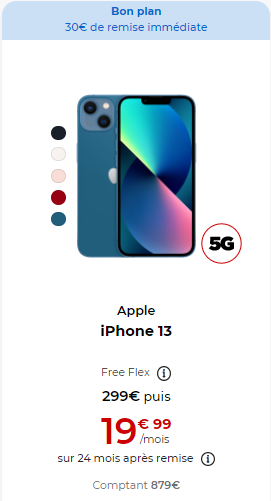 Le premier smartphone concerné est l’iPhone 13 qui bénéficie d’une remise de 30€.