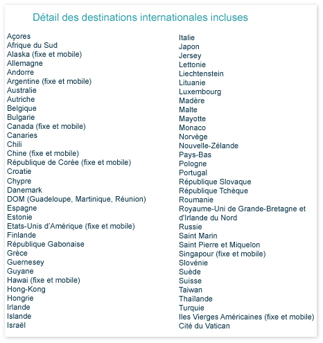 Et bien, la téléphonie englobe les appels (hors N° spéciaux) vers les fixes en France métropolitaine (y compris les N° de box commençant par 087 et 09...), et vers 67 destinations internationales :