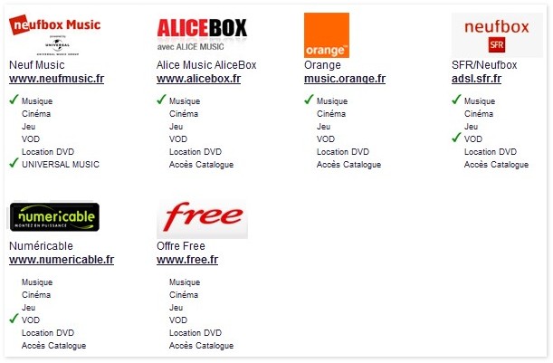 Cependant, "jaimelesartistes.fr" n’a pas oublié de mentionner la Vidéo à la demande de Numéricable et de SFR Neufbox, et/ou de lister plusieurs fois Universal Music.