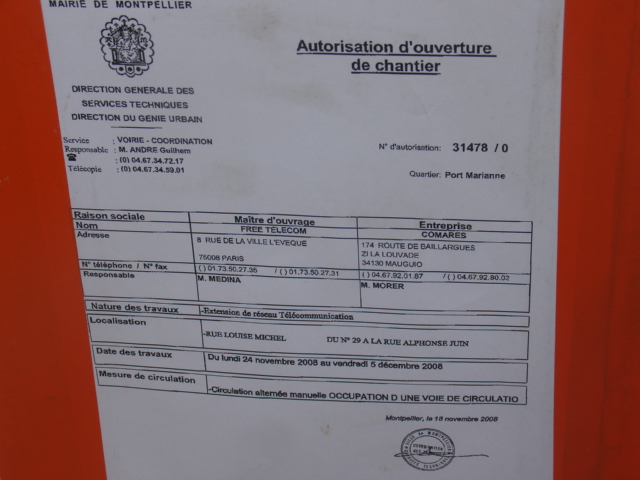 Nouvelle étape dans notre tour de France des travaux FTTH de Free. Après Paris et différentes villes d’Ile de France, Khalid, freenaute et lecteur d’Univers Freebox, nous a envoyé les photos des travaux entamés ce matin dans le quartier de Pompignane (près de la piscine) à Montpellier.
