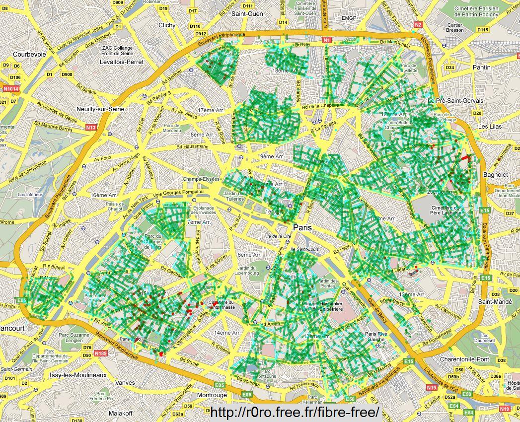 Romain, un freenaute passionné, lecteur d’UniversFreebox, nous propose de découvrir une nouvelle carte (mise à jour) du déploiement (ou en cours de déploiement) de la Fibre Optique Free à Paris.