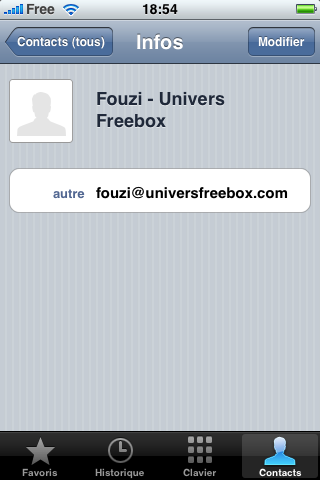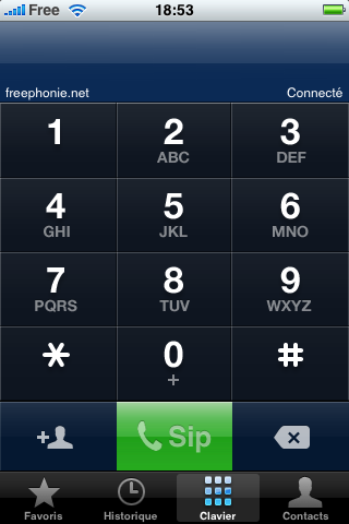 Clavier d’appel (avec réseau Freephonie.net activé)
