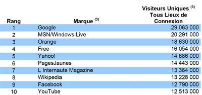 Médiamétrie a publié aujourd’hui les audiences des sites web de février. Dans le top 30 des sites les plus visités (applications internet exclues), le domaine free.fr se classe ainsi 4ème avec 16 054 000 visiteurs uniques sur le mois, contre 16 124 000 le mois précédent. En première position on retrouve Google, suivi de MSN/Windows Live et Orange qui se place en 3ème position.
